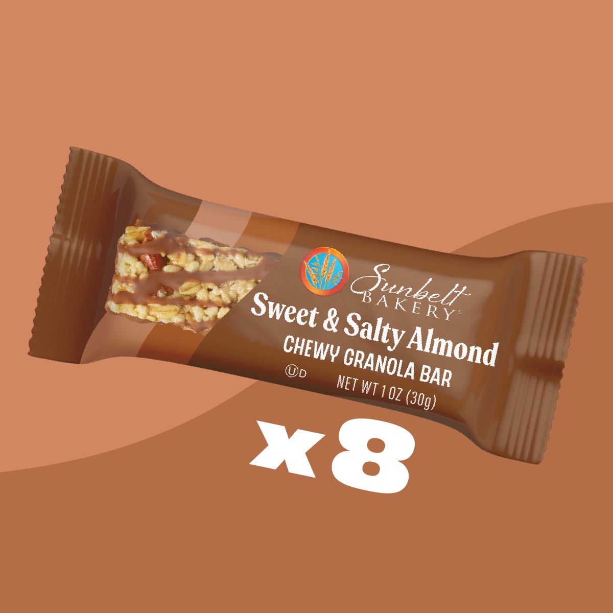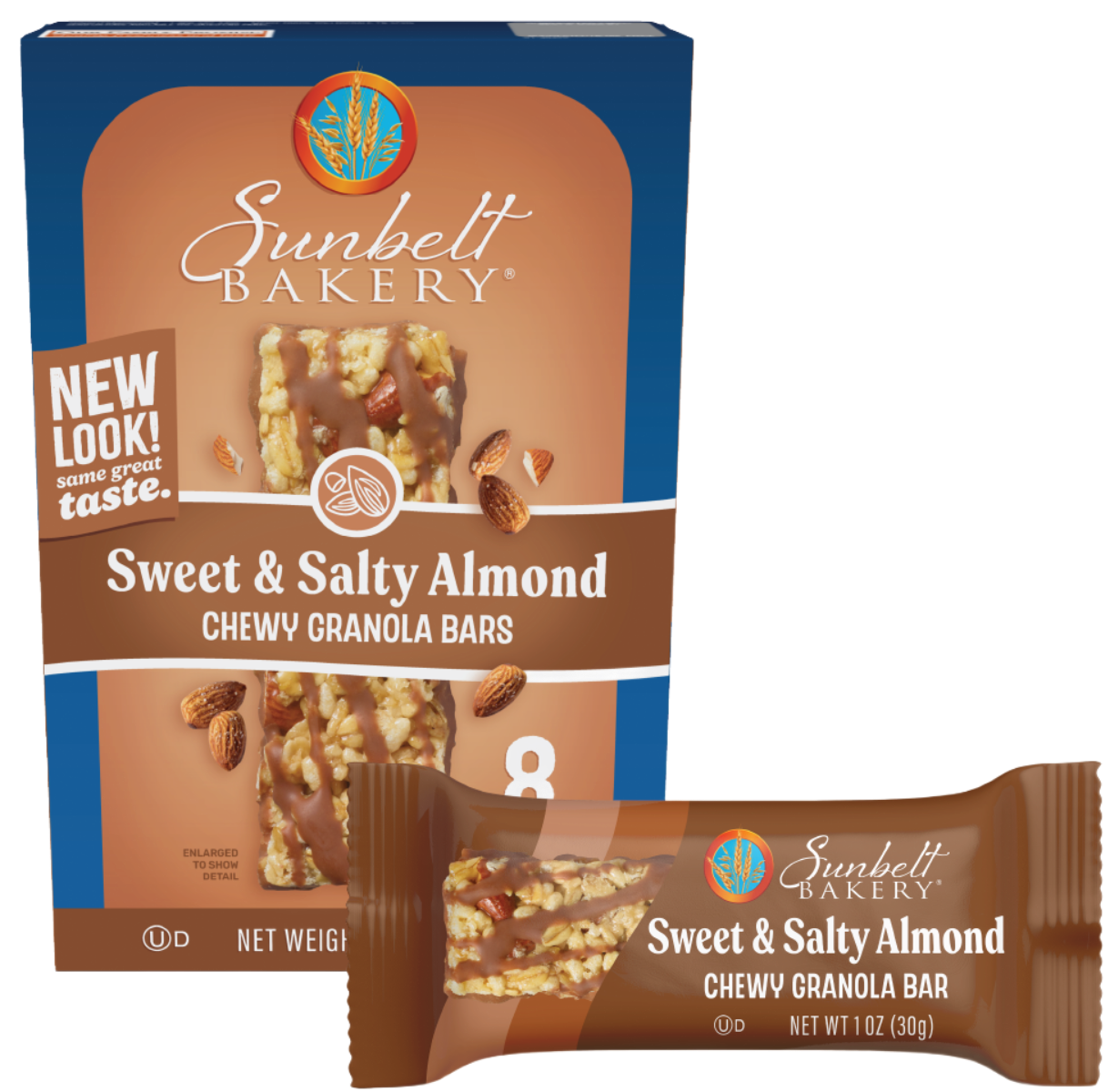 Sunbelt Bakery Sweet & Salty Almond Chewy Granola Bars are made with morning rushes in mind! Grab them out of the pantry as you start your day. Expertly roasted almonds and chocolatey fudge are mixed to create an almond lover's favorite snack! Enjoy 5 grams of whole grain in each bar as you pair it with your yogurt to create the ultimate sweet and salty breakfast treat.