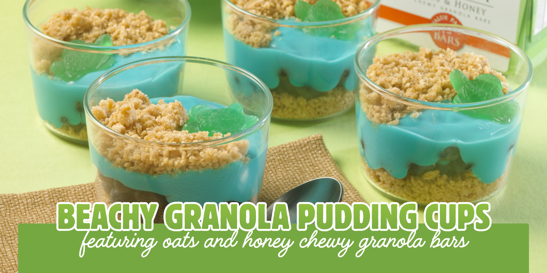 Delicious, beachy and fun, our Beachy Granola Pudding Cups are made with the fan favorite Oats & Honey Chewy Granola Bars. Using simple ingredients, vanilla pudding, blue food coloring, fresh blueberries and fun turtle gummy candy creates this adorable treat your kids are sure to love. Enjoy poolside or after a day of learning at the aquarium, this treat is ideal for little hands to enjoy. Plus, it's perfect for a beach-themed party, too! Give it a try for a new way to enjoy your favorite granola!