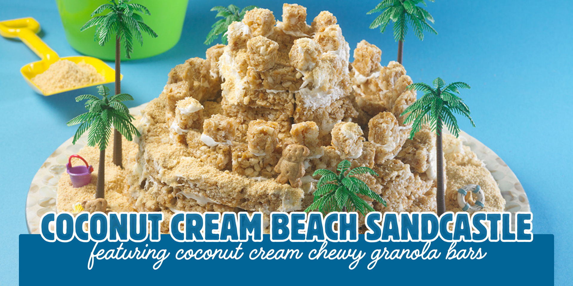 Enjoy building your own Sunbelt Bakery "sandcastle" with seasonal Coconut Cream Chewy Granola Bars! This deliciously fun and adventurous creation will put your skills to the test as you mold each granola bar into a new sweet layer. Plus, it's a show stopping piece that is perfect for your next beach-themed party, or a fun summer activity with the kids! Give a try by following our step-by-step directions below.