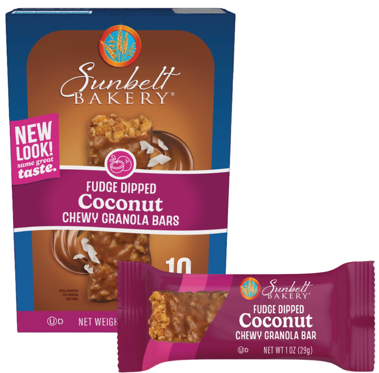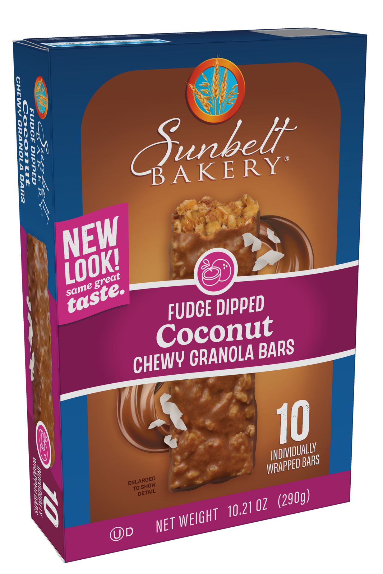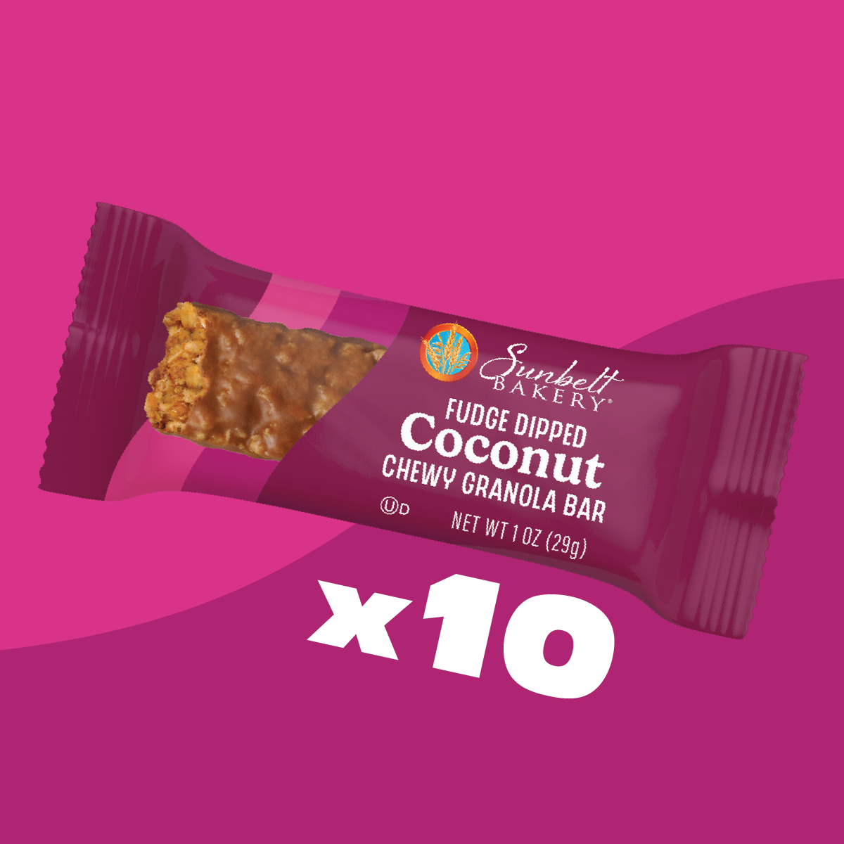 Coconut and chocolatey fudge create the ultimate flavor profile in Sunbelt Bakery Fudge Dipped Coconut Chewy Granola Bars. Delicious fudge covers whole grains and shredded coconut flakes to create a tasty snack for any time of the day. Made with 4 grams of whole grain per serving, this scrumptious treat will help see you through your mid-day slump!