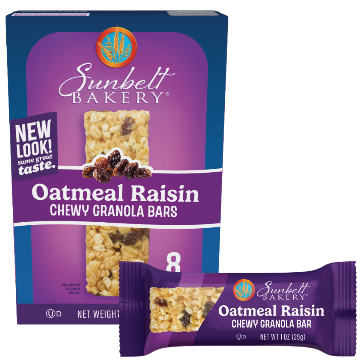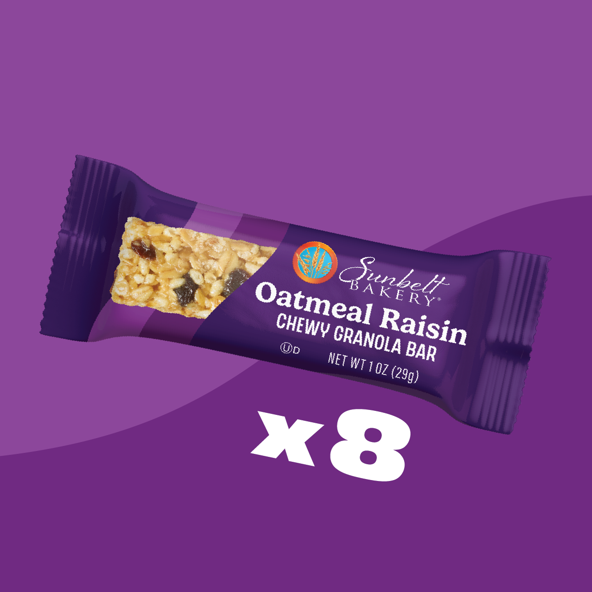 The taste of yummy oatmeal raisin is now found in Sunbelt Bakery Oatmeal Raisin Chewy Granola Bars! Made with sun-dried raisins and rolled oats; You can have a scrumptious oatmeal raisin experience. Each bar has 8 grams of whole grain per serving. Great for taking on-the-go as you run errands or as you head out the door for your early morning meeting at the office. Pick up a box on your next grocery store run, or purchase an 8-count Family Pack online by clicking the "buy now" button below!