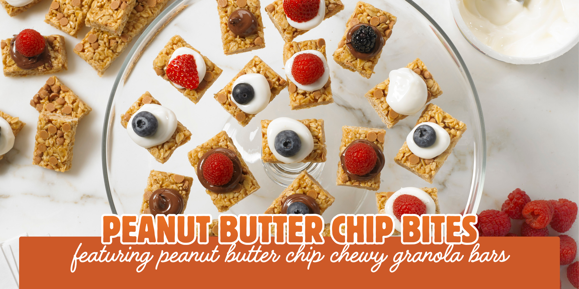 - Begin topping each granola bar with generous spoonfuls of vanilla Greek yogurt or Hazelnut spread.