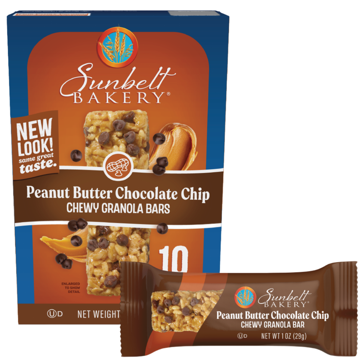Love the classic combination of peanut butter and chocolate? Then you will love Sunbelt Bakery Peanut Butter Chocolate Chip Chewy Granola Bars. Smooth peanut butter and mini chocolate chips are combined with a perfect mix of granola to create this mid-day indulgence. Each bar has 7 grams of whole grain per serving, and is the perfect snack for anytime of day. Great for a quick and easy snack, pick up a box on your next grocery shopping trip! You can also purchase a 10-count Family Pack online by clicking the "buy now" button!