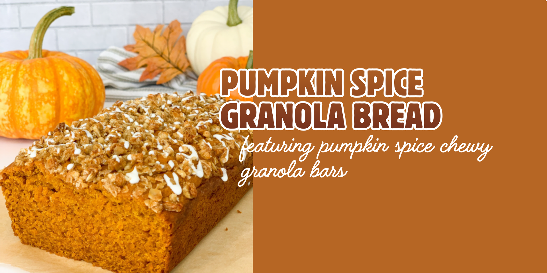 Our seasonal Pumpkin Spice Chewy Granola Bars make the perfect delectable topping for this tasty bread recipe from our friends at Party Pinching! This instant fall classic will have everyone in your family craving a slice! Give it a try with this tasty seasonal treat. Get the full recipes with pictures here!